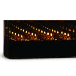 Made entirely out of mirrored glass to create the illusion of infinite candle light.